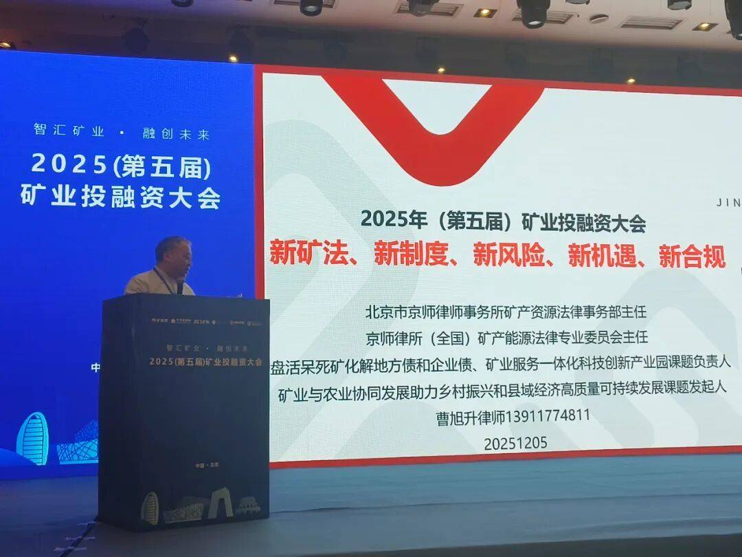 北京市京师律师事务所矿产资源部主任、京师(全国)矿产能源专委会主任、中国地质大学(北京)自然资源法治研究中心研究员曹旭升,围绕 “新矿法、新制度、新风险、新机遇、新合规” 五大维度,构建矿业合规发展的完整逻辑体系。他结合典型实务案例,解读新制度框架下矿业企业的合规底线与操作边界 —— 如何应对环保、安全、劳动用工等方面的严格要求,如何利用政策支持实现转型升级。曹旭升研究员将提出 “合规即竞争力” 的核心观点,助力企业在防控风险的基础上,精准捕捉政策导向下的发展机遇,实现可持续增长。
